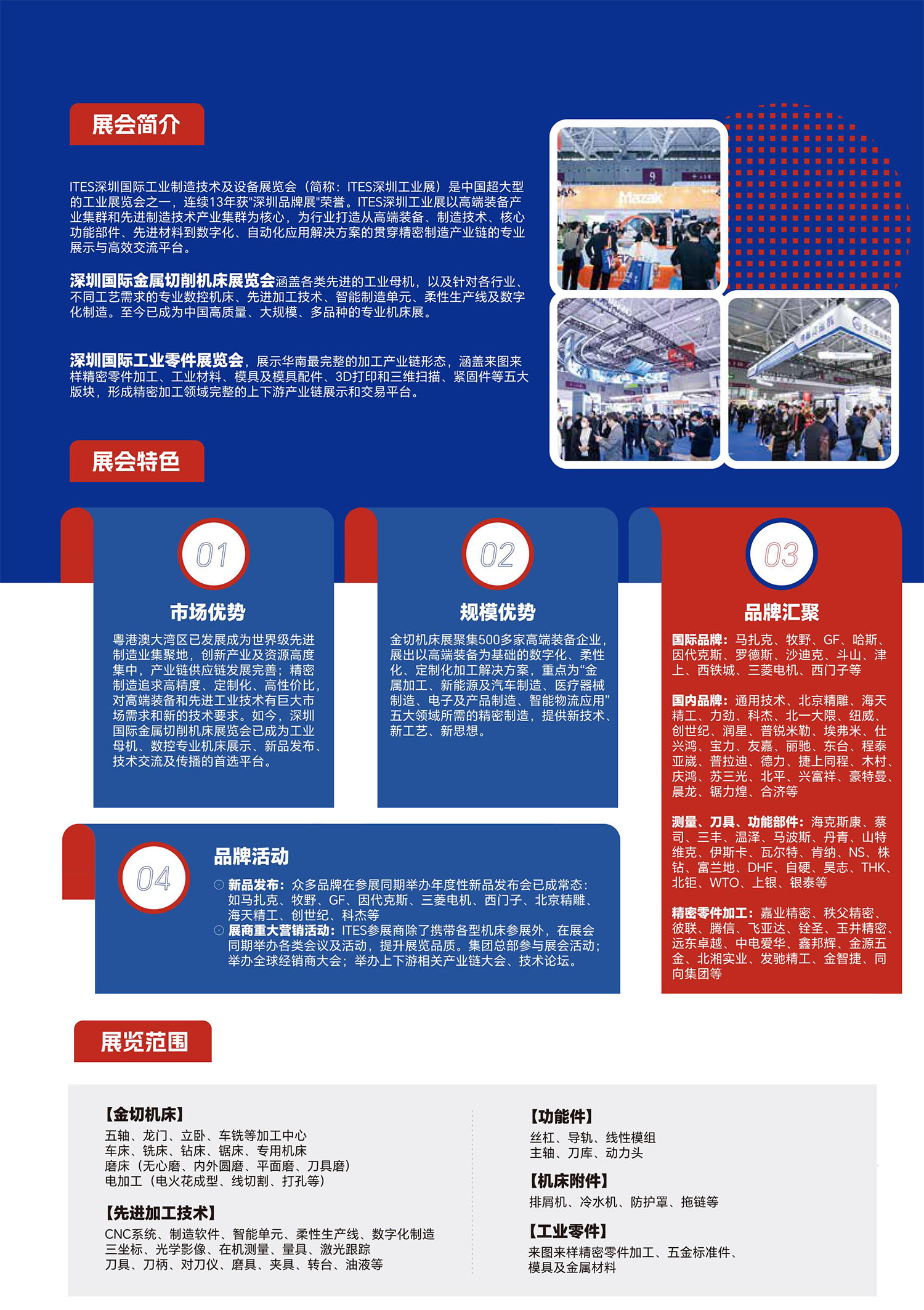 涵蓋各類先進(jìn)的工業(yè)母機(jī),以及針對(duì)各行業(yè)不同工藝需求的專業(yè)數(shù)控機(jī)床、先進(jìn)加工技術(shù)、智能制造單元、柔性生產(chǎn)線及數(shù)字化制造。至今已成為中國(guó)高質(zhì)量、大規(guī)模、多品種的專業(yè)機(jī)床展。